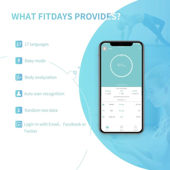 - гЂђRecording and Sharing in APPгЂ‘ Download Fitdays from APP Store or Google Play. Smart phones get automatic binding and record all the changes automatically. Check the data in Fitdays APP anytime and anywhere you want. Clear changing curve helps you keep up with your improving easily.