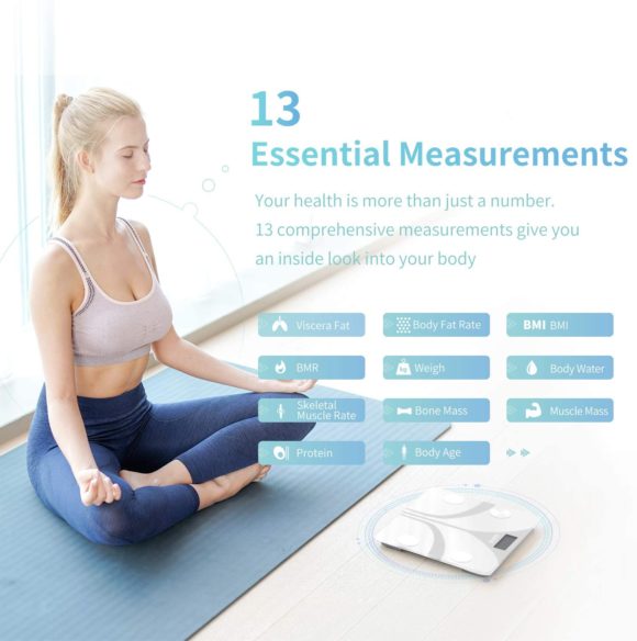 - гЂђChanging Starts from KnowingгЂ‘ 11 Health indicators provide accurate data for weight, BMI, Body fat rate, Visceral fat, body water, skeletal muscle rate, Muscle mass, bone mass, Protein, BMR, Body age.